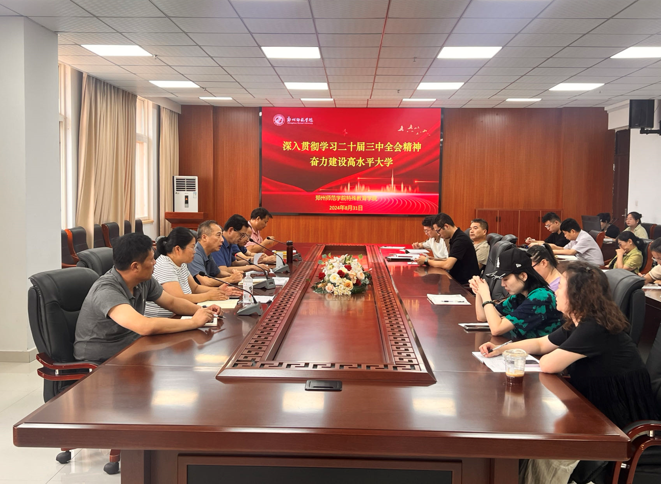 特殊教育学院党总支书记申培新在会议上带领全体教职员工深入学习和宣传贯彻党的二十届三中全会精神。申培新强调,作为教师,必须深刻理解“实践续篇”和“时代新篇”的内涵,充分认识到“两个确立”的决定性作用,并坚定不移地执行“两个维护”,同时,应集中精力于进一步全面深化改革的主题、主线和目标任务,努力为中国特色现代化贡献自己的力量。 申培新在会议上带领大家学习了《中共中央关于深化改革推进中国式现代化的决定》框架,讨论了全会的意义、指导思想、目标、原则、举措和保证等关键点。他强调全会精神的重要性,并提供学习建议。党的二十届三中全会精神是当前和未来的重要指导方针,作为教师,要在教学中贯彻党的二十届三中全会精神,推动学院发展。