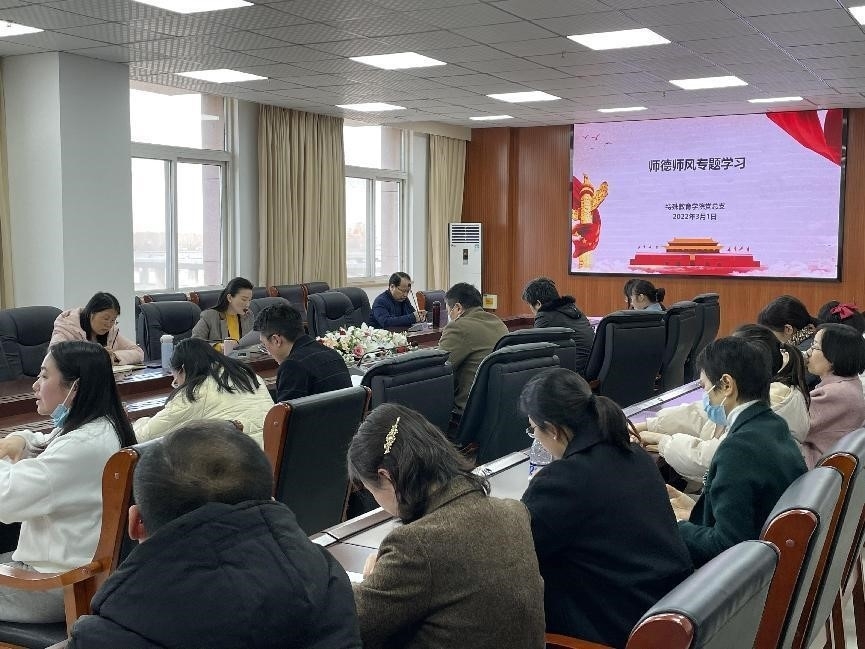 3月1日下午3点,我院全体教职工尚志楼708举行师德师风专题学习。此次学习由党总支副书记董晶晶领学。