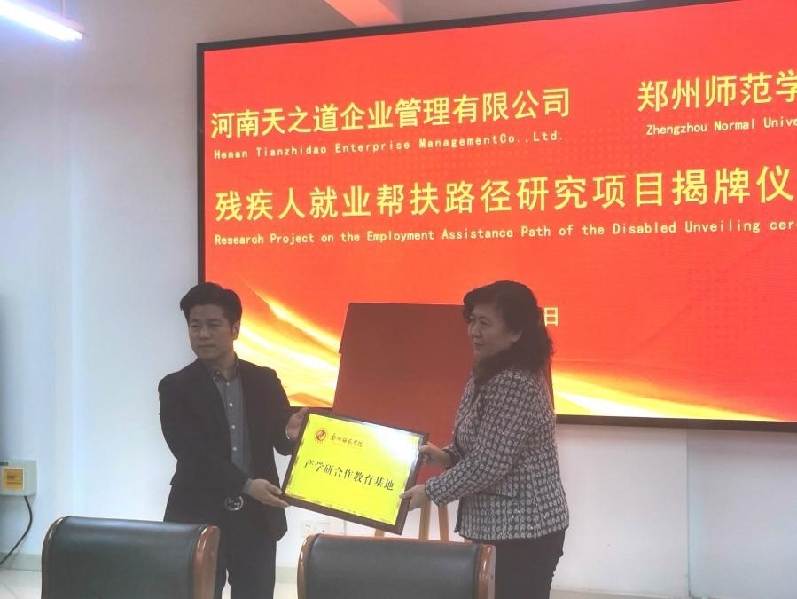 河南省天之道管理有限公司张健国总经理表示将会以此次研究项目为契机,以既定“真投入,真规范,真就业,合理,合法,合规”的“三真,三合”发展思路为指导,以“奉献点滴关爱,共享一样蓝天”为奋斗初心,坚持帮助一个残疾人就业就会少一个的执着信念,通过因人设岗,以岗适人等方式,帮助更多残疾人实现就业,通过深度合作,实现学校、企业、社会三方共赢,为特殊教育事业和社会做出应有的贡献!
