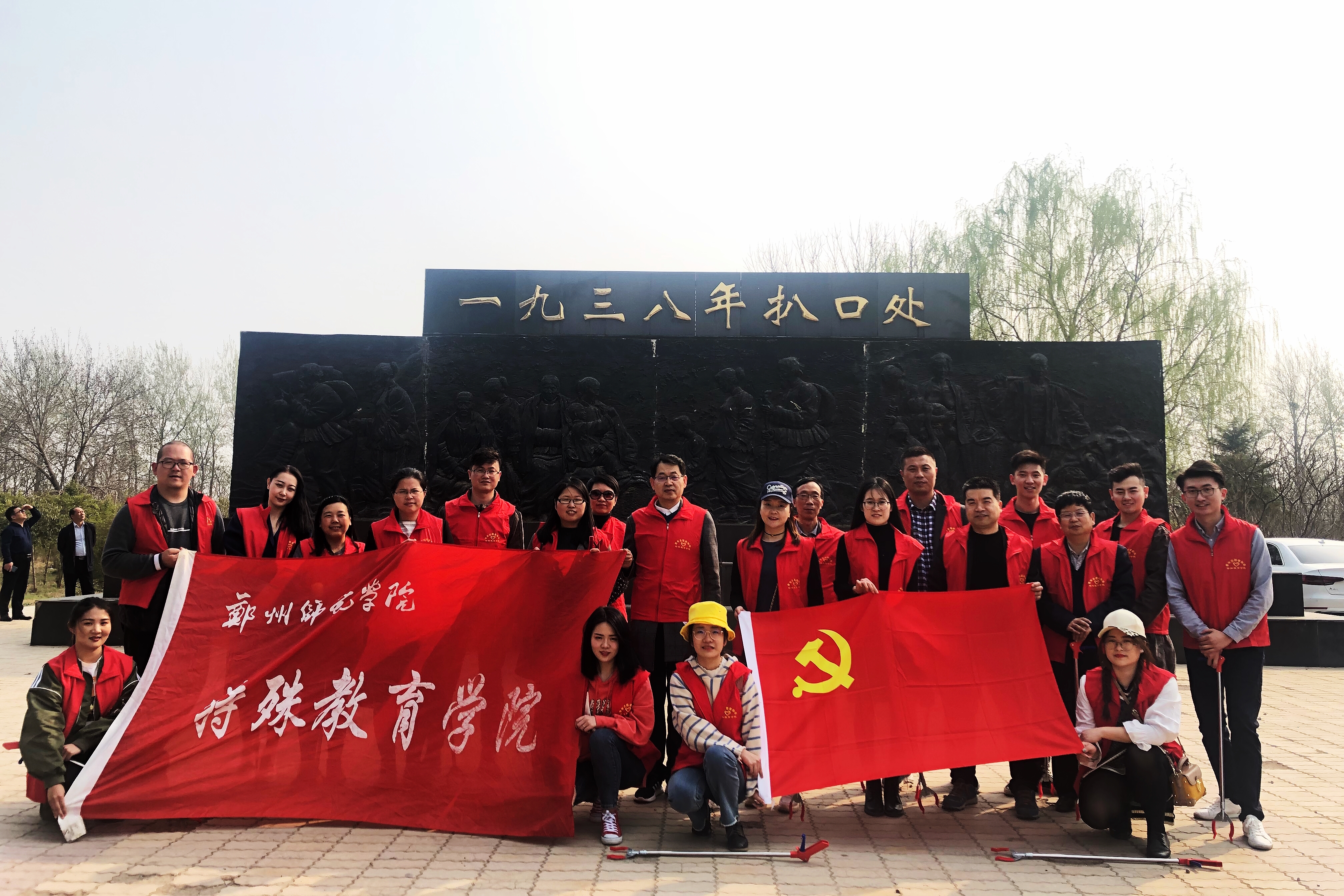 为缅怀抗日历史,汲取总结教训,2019年3月19日下午,特殊教育学院党总支教工党支部和学生党支部的党员们乘坐校车来到黄河花园口事件记事广场进行参观学习。进入广场,党员们首先瞻仰黄河花园口扒口堵口记事浮雕墙和纪念碑,伫立碑前,缅怀数十万遇难同胞。接着,党员们参观了广场内的普法长廊。参观学习结束后,特殊教育学院党总支的党员们开展了“捡拾白色垃圾,保护母亲河”党员学雷锋志愿服务活动,为建设“绿水青山”贡献力量。