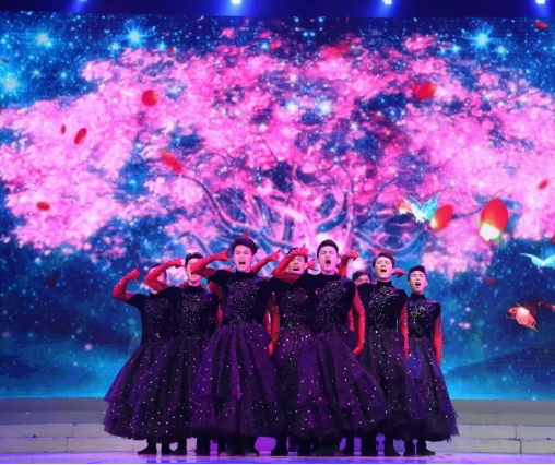 在颁奖典礼上,艺术团的同学们用心演绎《妙手生花》,他们身着黑红相间的演出服,用富含生命力的身体语言表达出了对未来美好的憧憬。