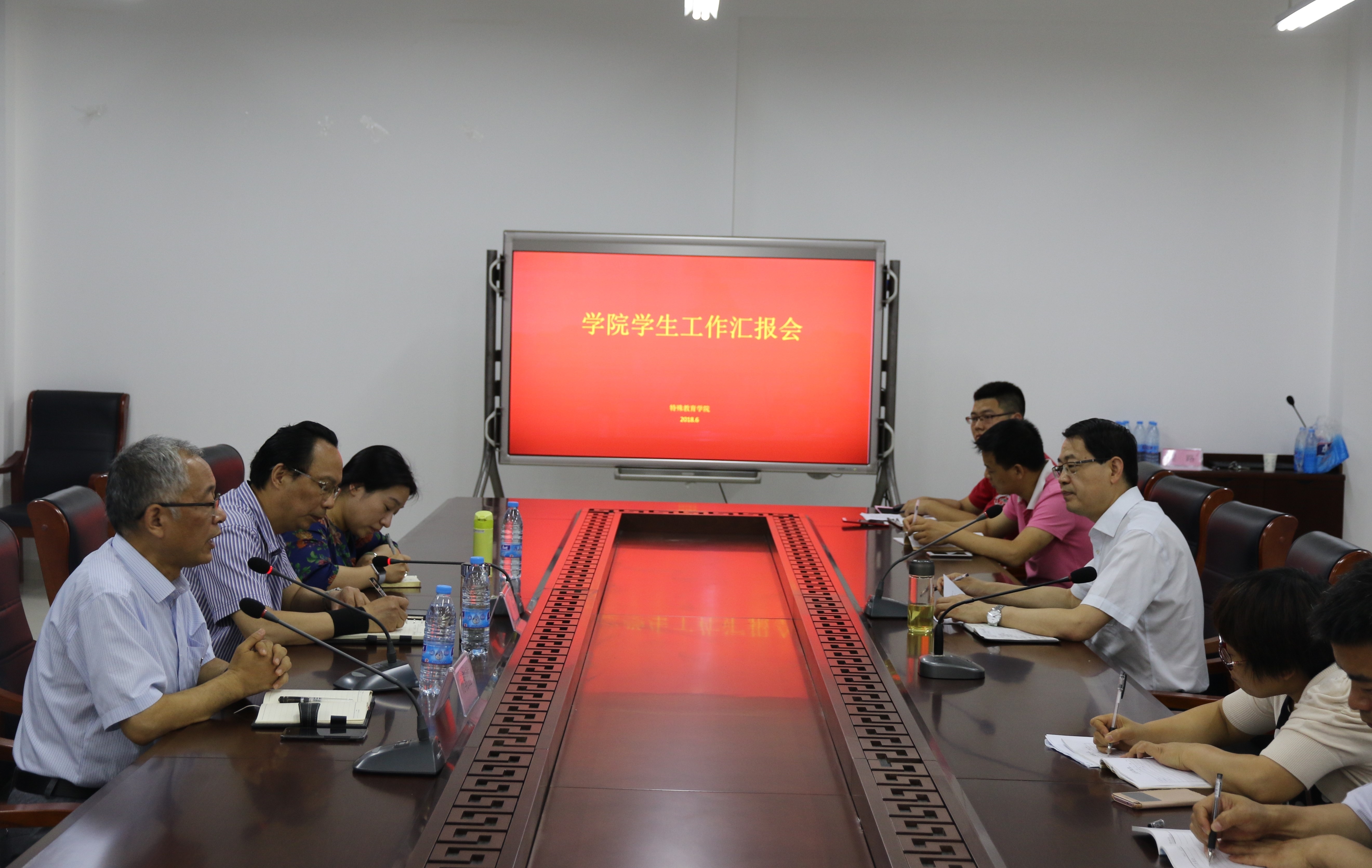 高宏院长从特殊教育学院的学院概况、队伍建设、思想政治教育、学生事务管理、健康教育、资助管理、宿舍管理、校园安全稳定、工作成绩以及工作中遇到的困难和问题等十个方面向盛校长逐一汇报。