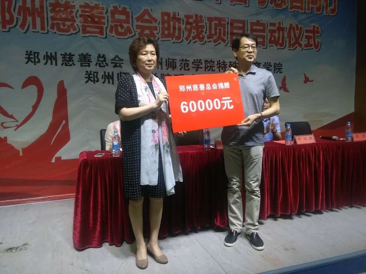 会议初始,特殊教育学院申培新书记发表致辞,向与会的慈善总会领导和爱心企业家们表示热烈的欢迎,他指出这项活动的举行,对于进一步鼓舞社会各界人士扶弱助残起到了积极的示范作用。王合生副秘书长发言表示,该项目是继“慈善的声音”——贫困听障儿童救助慈善项目、“聋艺画廊”——聋人创业慈善项目、“聆听世界 触摸光明”——盲童救助慈善项目等多个助残类慈善项目之后,郑州慈善总会在慈善助残领域的又一次大胆尝试,自2012年起,郑州慈善总会在助残领域不断探索,研究残疾人群体的迫切需求,使慈善资源能够为各类残疾人群体提供最有效最贴心的帮助。在本次启动仪式上郑州慈善总会向艺术团捐赠善款六万元用于项目的实施,另有中牟企业家联合商会的王燕灵董事长和冯广伟董事长现场为我校三名贫困聋人大学生捐赠总额一万五千元的助学金。