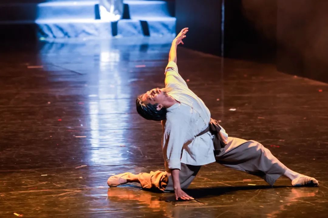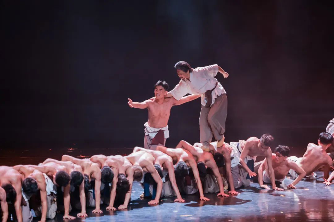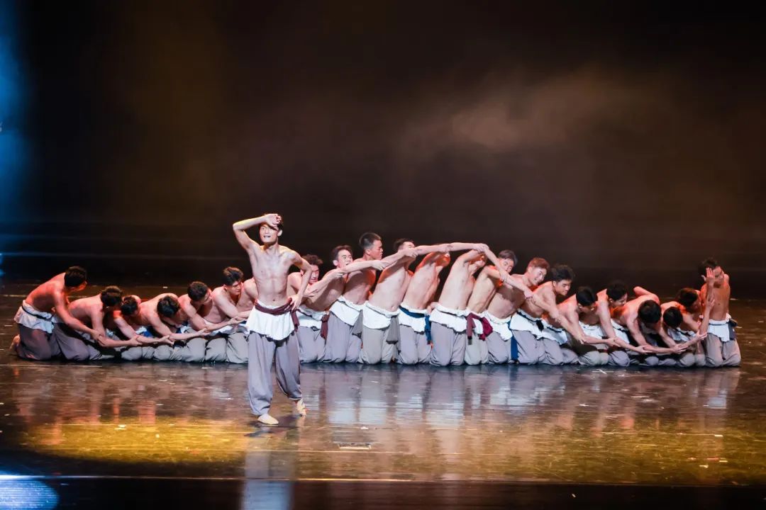 舞蹈作品《母亲河流过我心上》演出团队共28人,舞蹈以黄河文化为叙事主线,聚焦黄河儿女守护家园的主题,通过极具张力的肢体语言和情感表达,跨越声音屏障,生动再现了黄河岸边的壮阔图景,展现了黄河奔腾不息的自然伟力与中华民族坚韧不拔的精神品格。舞台上,听障舞者们化身坚韧的治沙人,双臂挥动如风,将开垦荒漠、播撒绿色的艰辛展现得淋漓尽致。领舞饰演的老爷爷角色,以苍劲执拗的舞姿,演绎了代代相传、生生不息的愚公精神。而在展现希望与生机的段落,演员们以充满力量与美感的“双飞燕”等专业技巧腾跃而起,恰似破土新苗迎风招展,让生命的活力在黄土地上蓬勃迸发,将黄河的磅礴气势与沿岸人民的情感羁绊融为一体,谱写了一曲对黄河的深情礼赞。