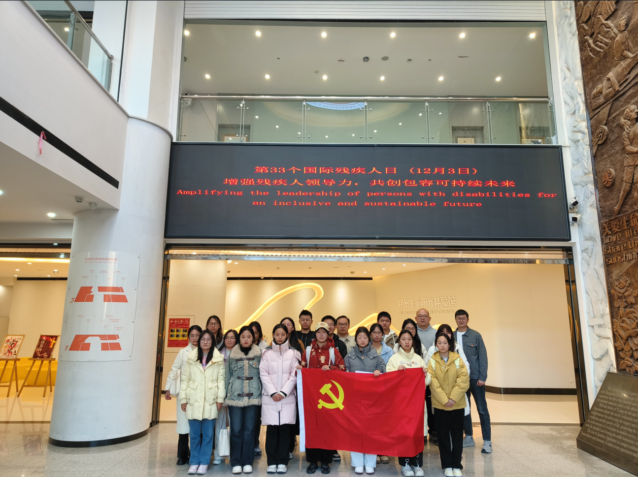 2024年12月3日下午,特殊教育学院党总支学生支部在郑州师范学院生命阳光体验馆开展“增强残疾人领导力,共创包容可持续未来”主题党日活动。本次活动的主题是推动社会对残疾人能力的全面认知与重新审视,打破刻板印象与偏见,构建一个尊重差异、平等对待残疾人的社会环境。让未来的社会规划与决策充分考虑残疾人需求与权益保障,达成真正意义上的全人群包容与和谐共进。特殊教育学院党总支学生支部全体在校党员,预备党员参加。