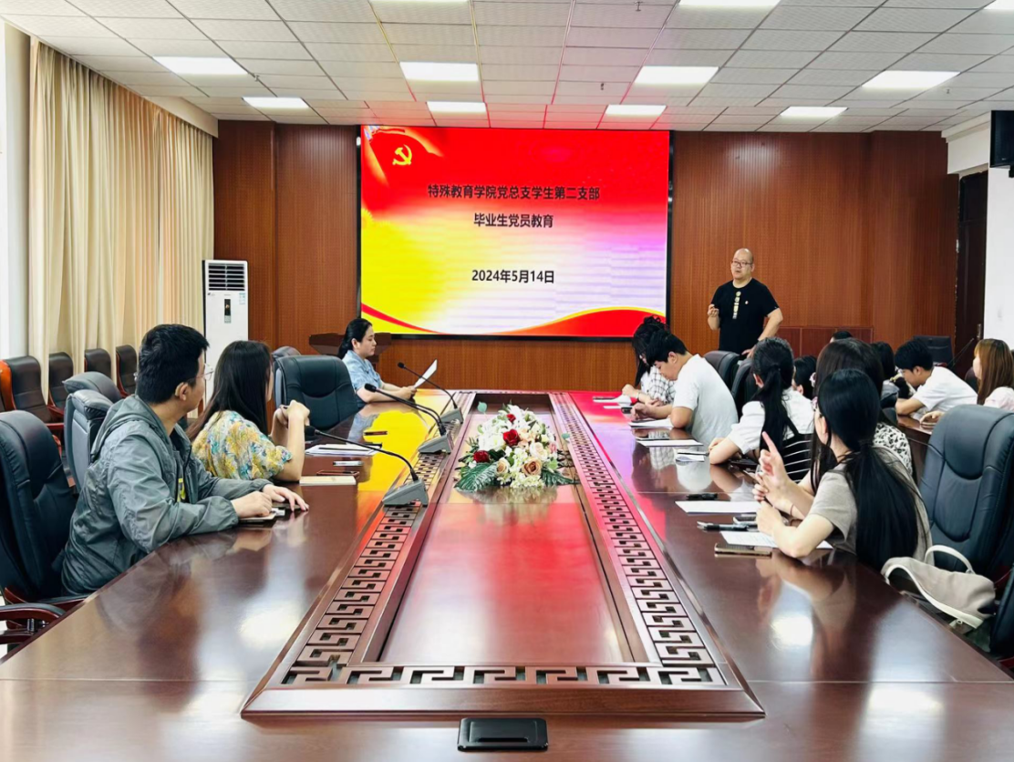 2024年5月14日下午,特殊教育学院党总支学生第二支部在尚志楼708召开毕业生党员教育会议,会议集中讲述了毕业生组织关系转接相关的内容。特殊教育学院党总支学生第二支部全体在校党员、预备党员到会,会议由陈栋同志主持。