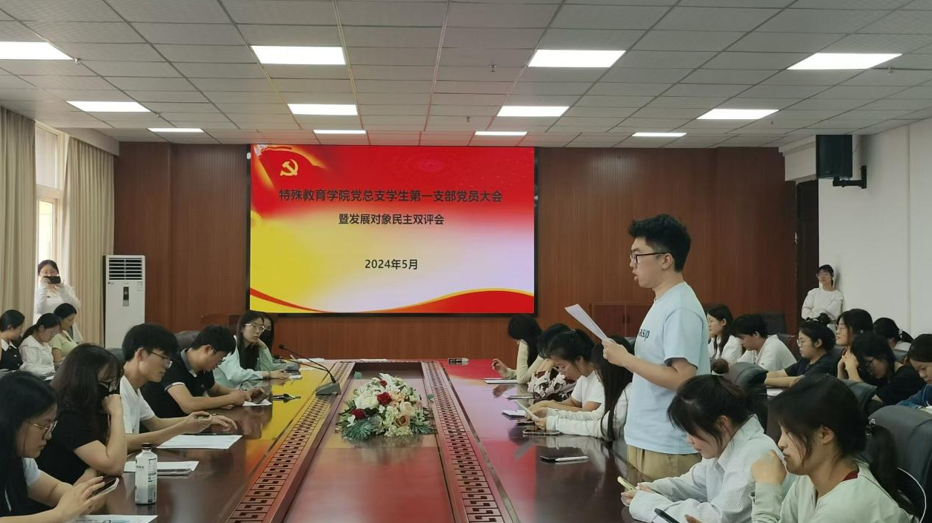 为认真贯彻落实党的“双推双评三全程”发展党员办法,做到按程序、有计划的发展党员,切实保证新发展党员质量,2024年5月27日下午,特殊教育学院党总支学生第一支部在708会议室召开了发展对象民主双评会议,特殊教育学院党总支学生第一支部全体党员、预备党员和群众代表参加了此次会议。