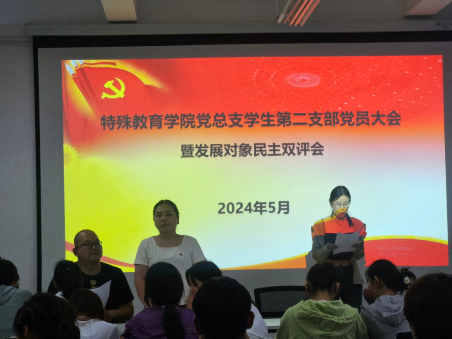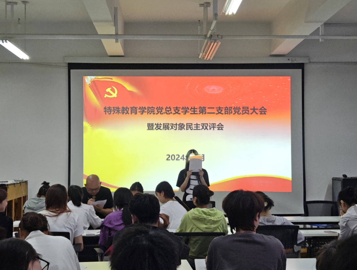 为认真贯彻落实党的“双推双评三全程”发展党员办法,做到按程序、有计划的发展党员,切实保证新发展党员质量,2024年5月27日下午,特殊教育学院党总支学生第二支部在1007会议室召开了发展对象民主双评会议,特殊教育学院党总支学生第二支部全体党员、预备党员和群众代表参加了此次会议。
