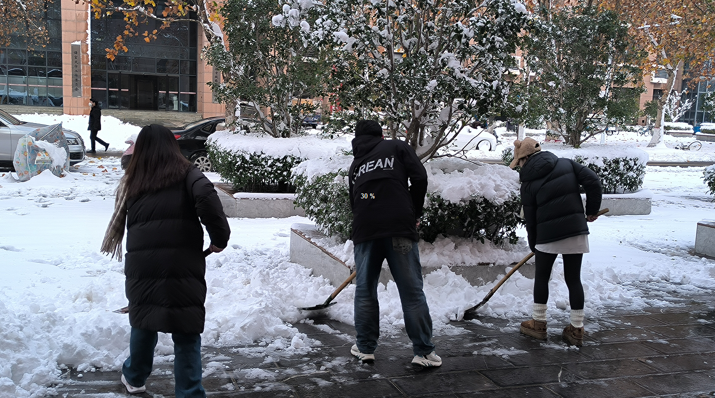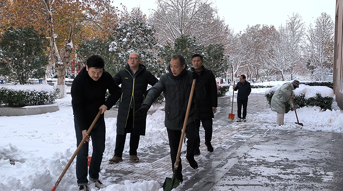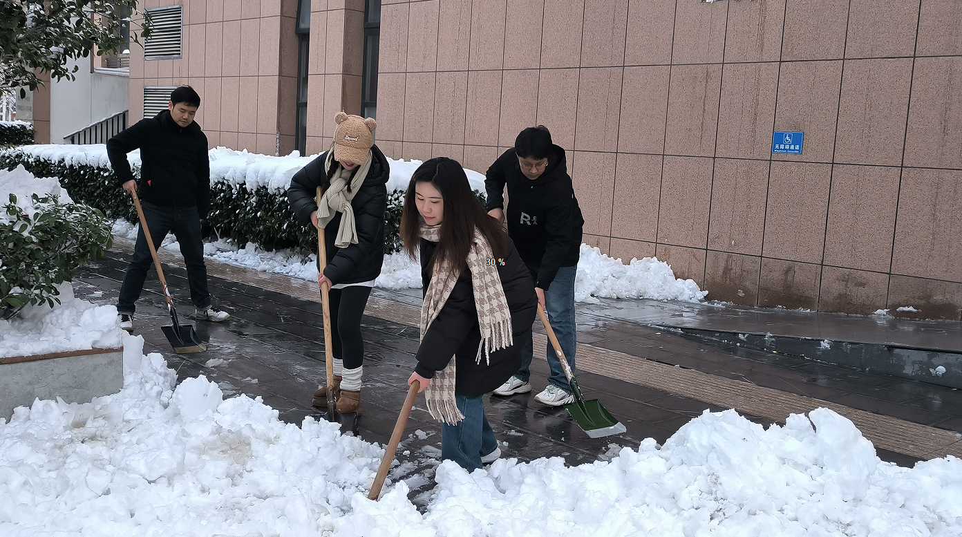 在清扫教学楼门口前的积雪时,申培新同志强调一定要将道路积雪打扫得干干净净,防止学生在上课路上滑倒,保障学生们在校的安全,让在校师生感受到党员服务群众的温暖热情,加深在校师生对党的认识和了解,充分拉近党群距离,保障我院发展党员工作的“源头活水”。道路积雪打扫干净后,党员同志们有序地将清扫工具归还。