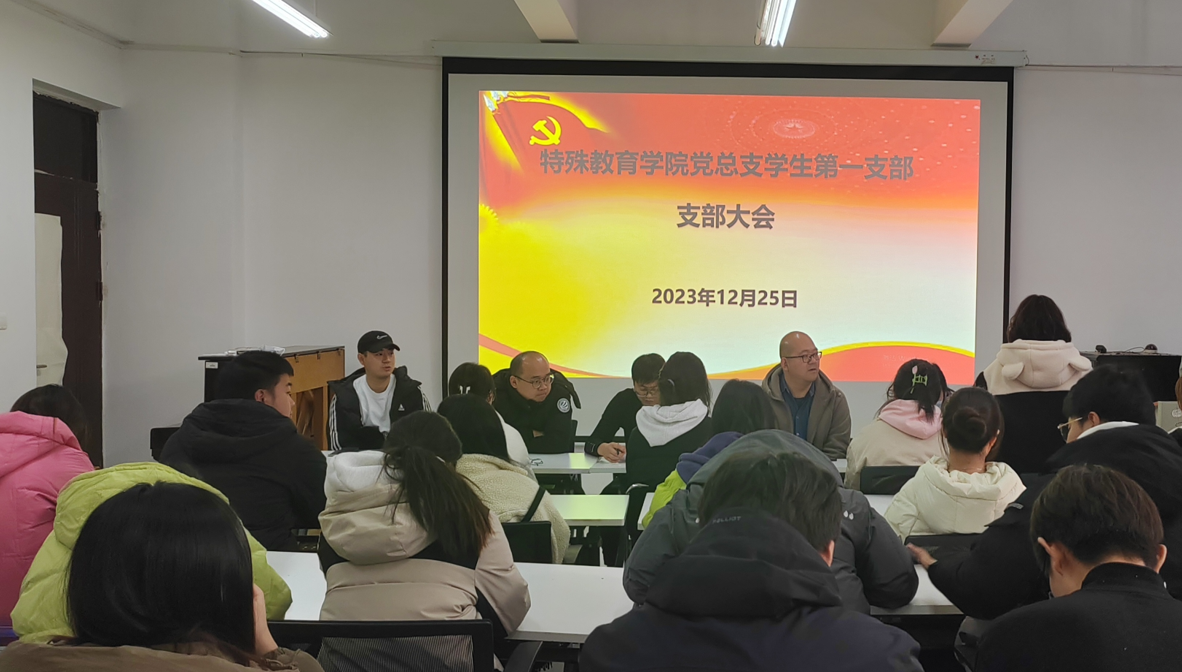 2023年12月25日,特殊教育学院党总支学生第一支部在尚志楼1007召开支部大会,大会的主要议题是讨论接收新一批预备党员。学生第一支部部分党员,预备党员到会,会议由钱学刚同志主持。