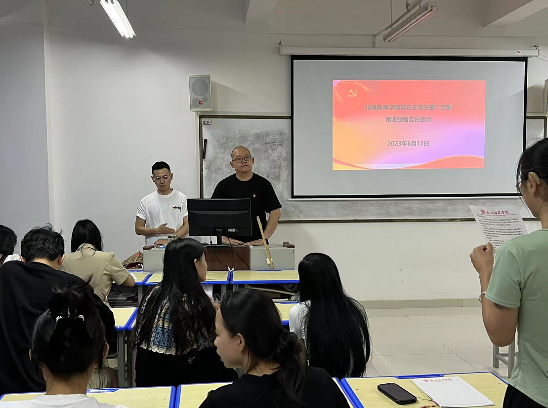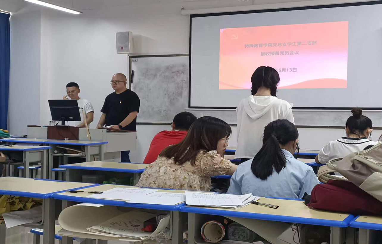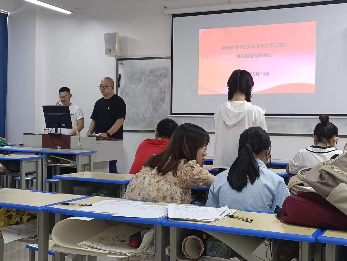 2023年6月13日,特殊教育学院党总支学生第二支部在尚志楼1006召开支部大会,大会主要议题是对二支部发展对象进行评议,确定是否接收为预备党员。学生第一支部全体党员,预备党员到会,会议由陈栋同志主持。