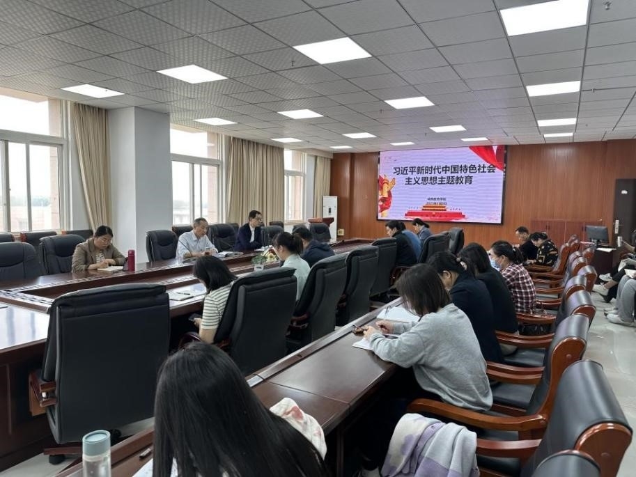 5月9日下午2:00,我院在708举行习近平新时代中国特色社会主义思想主题教育学习,全体教职工参加此次学习,党总支书记申培新主持领学。