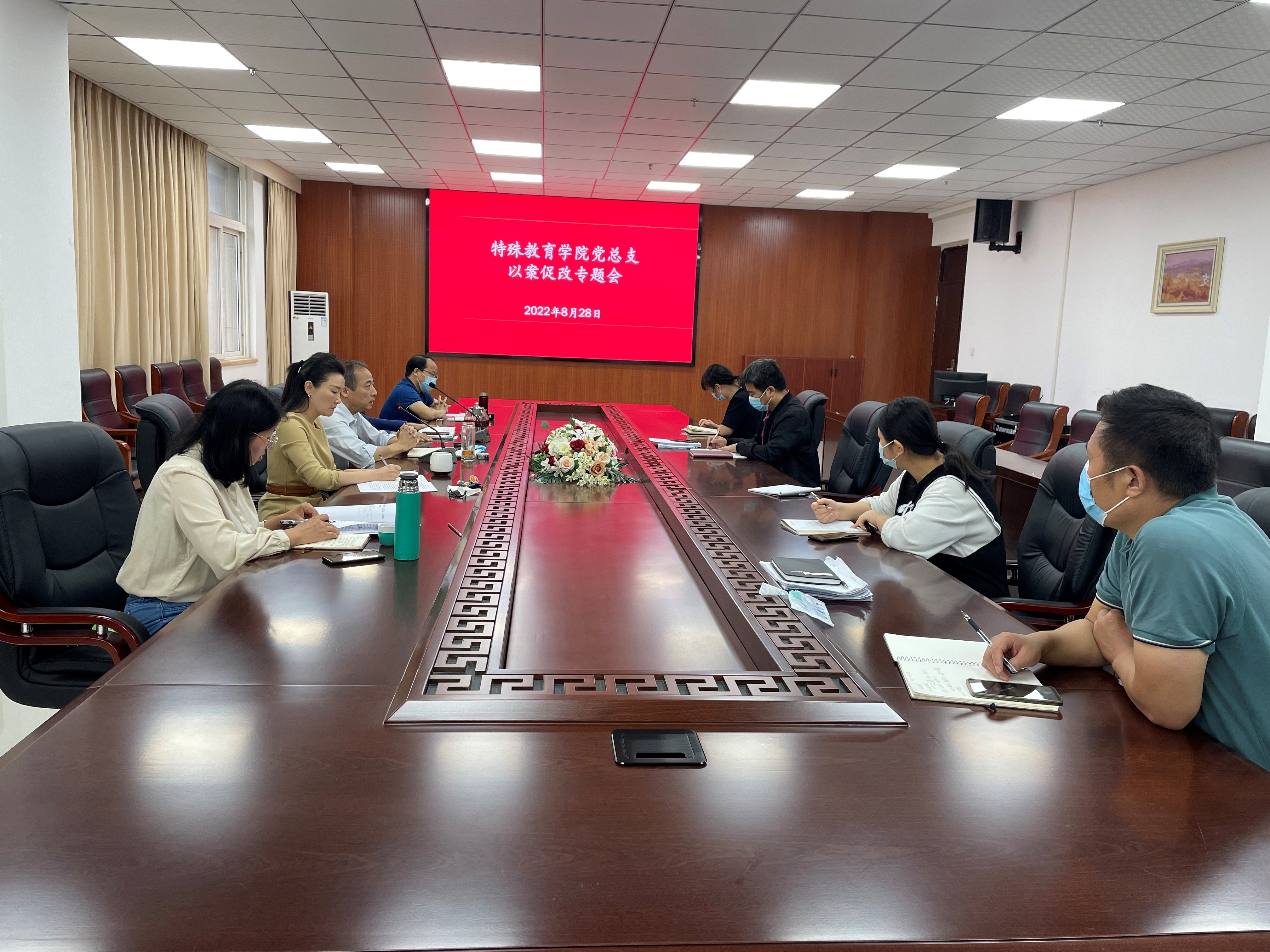 2022年8月28日上午,特殊教育学院党总支在尚志楼708会议室,组织全院教师召开以案促改专题大会。