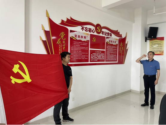 在党总支书记申培新同志的带领下,特殊教育学院党总支新老党员一起,面向国旗,庄严宣誓,重温入党的光荣时刻,再次提醒自己不忘初心,牢记使命,为国家富强、民族复兴努力奋斗!