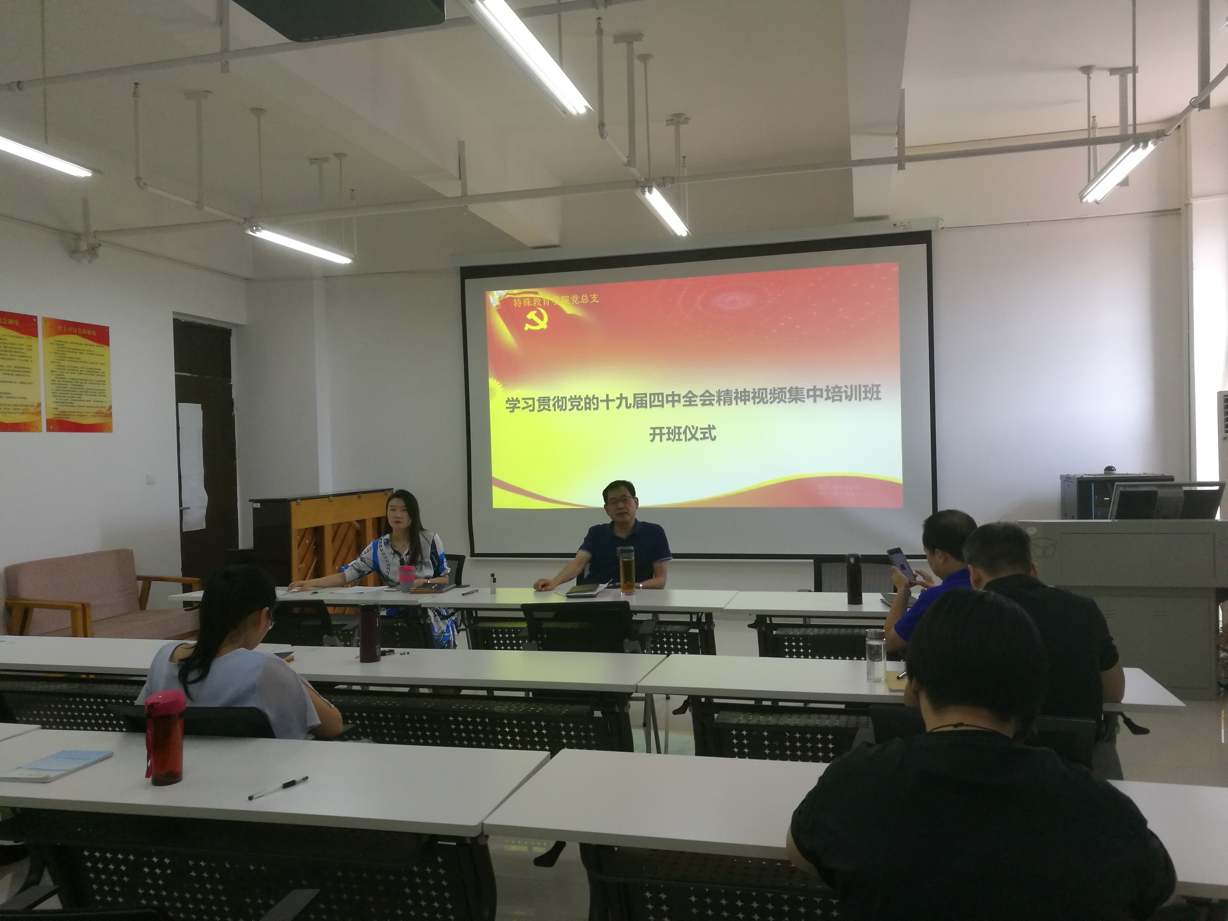2020年8月26日下午2:00,特殊教育学院党总支按照上级党委要求,认真落实学习贯彻党的十九届四中全会精神视频集中培训,组织全体干部在尚志楼1007党员活动室开展为期三天的干部集中培训正式开班。