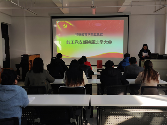 2019年11月19日下午,在特殊教育学院党总支的指导下,教工党支部在尚志楼1007召开换届选举大会,全体教工党员参加了此次会议。