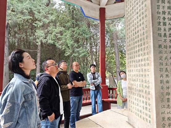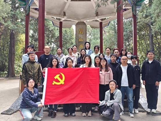 碧沙岗公园的前身是碧沙岗陵园,是为纪念北伐国民革命军第二集团军阵亡将士在1928年而建立的。在碧血丹心碑前,党支部书记钱学刚同志带领全体党员共同回顾了北伐将士那段“碧血丹心,血殷黄沙”的壮阔历史。参与本次党日活动的全体党员认真聆听先烈们的光辉事迹,仔细阅读浮雕上刻有革命先烈们丰功伟绩的文字。他们的光荣事迹仿佛浮现在眼前,再现了革命先烈们同仇敌忾、浴血奋战、宁死不屈的抗战历史。