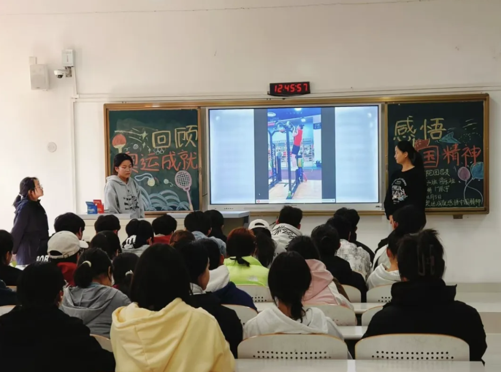 接着,主持人简要介绍了部分奥运健儿的个人事迹,带领同学们深刻体会其间的多种情感。张雨霏和刘翔等运动员,他们从晨曦微露时刻苦训练,到夜幕时孤独坚持,每一步都凝聚着汗与泪。在赛场上,他们锐意进取,以速度和力量诠释了生命的激情,践行了“更快、更高、更强、更团结”的奥林匹克精神核心理念,亦展现了热爱祖国和无私奉献的民族精神。当奥运与中国精神相遇,如同繁星与大地相拥,它们交相辉映,共同镌刻着人类文明的辉煌印记。