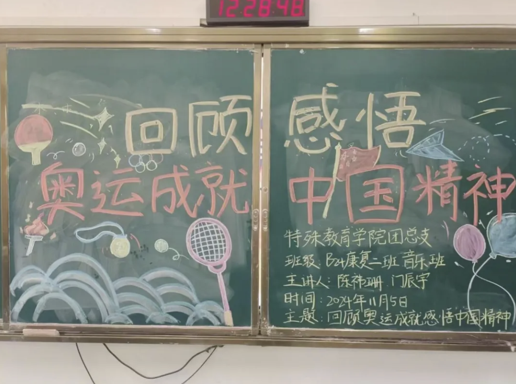 五环旗下展雄风,奥运舞台映辉煌;健儿拼搏铸荣耀,中国精神永传扬。在奥运赛场上,中国运动员以精湛的技艺,顽强的意志,诠释了奥运精神与中国精神的完美结合。为了培养大学生坚韧不拔的精神品质,引导大学生将奥运精神、中国精神融于思想,见于行动,积极投身社会实践。特殊教育学院团总支于2024年11月05日召开以“回顾奥运成就,感悟中国精神”为主题的政治学习会议。