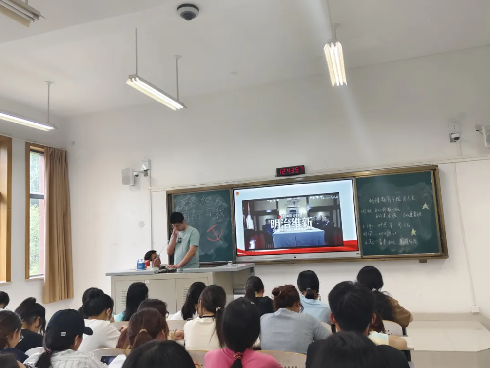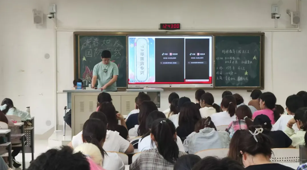 2024年9月10日,特殊教育学院团总支组织开展了以“青春如火,国防有我”为主题的宣传活动。本次活动以线下宣传为主,充分利用线下会议等方式来宣传“青春如火,国防有我”为主题的伟大抗战精神。为响应教育部门和郑州师范学院的要求,让同学们牢记历史,缅怀英烈,致敬英雄,我们特殊教育学院团总支组织积极通知各班级的负责人,以“青春如火,国防有我”为主题的活动进一步激发同学们的爱国热情、民族精神和责任意识。首先,主持人宣讲团通过演讲PPT,进行会议的形式讲解了九月三日抗日战争胜利纪念日、九一八事变纪念日和九月三十日烈士纪念日的具体含义和历史,更是通过视频材料加深同学们对历史事件的认识,讲解了每一个历史事件对中华民族不可磨灭的影响。随后,主持人为同学们详细讲述了抗战的艰苦历程。从九一八事变的爆发到七七事变的全面抗战,从平型关大捷的首战告捷,到百团大战的振奋人心,每一个历史事件仿佛历历在目,让同学们深刻认识到抗战胜利的来之不易。