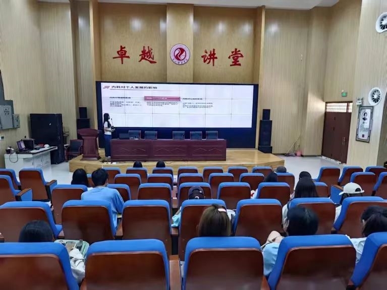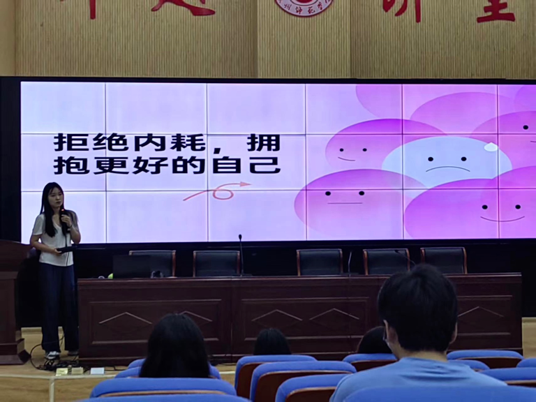 最后主持人向同学们发出倡议,大学生活是人生中一段宝贵的时光,让我们拒绝内耗的侵蚀,拥抱更好的自己。愿每一位大学生都能在大学四年时光中收获成长与喜悦,为自己的未来打下坚实的基础!
