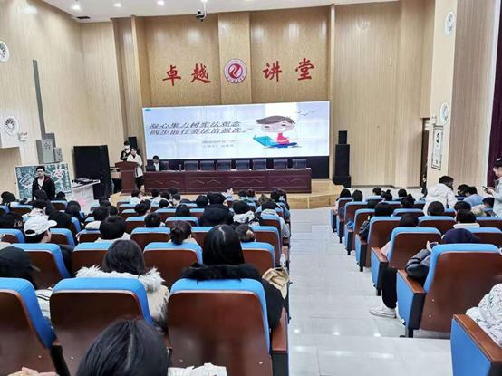 会议开始时,主讲人首先向同学们讲解了宪法的定义与内涵,同时引出宪法宣传日的时间。其次,向同学们解答了宪法最主要的核心价值,重点强调了法律在全面建成小康社会中的巨大作用,同学们由浅入深,由表及里,深入的理解了法律的意义。