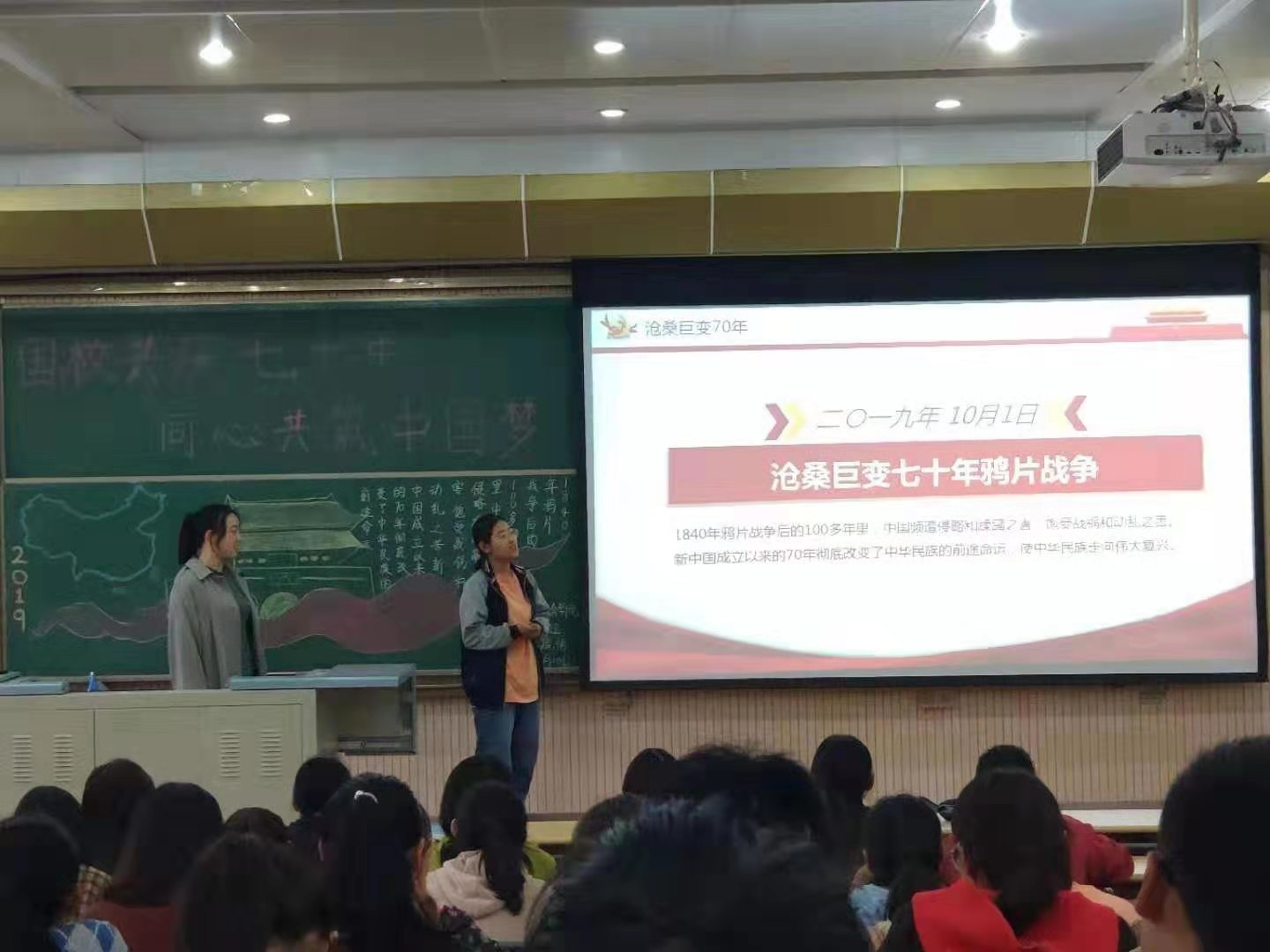 在会议正式开始前,李疏桐同学给同学们讲解了举办此次政治学习会议的意义所在和以及纪律上的要求,向同学们强调了政治学习会议的重要性。会议开始,首先随机提问了几位同学对于新中国成立70年以来的沧桑巨变的看法,并以观看图片以及视频的方式让同学们进一步了解新中国成立后70年以来的巨大变化。随后李疏桐同学向新生讲解了新中国成立以来几类具有代表性的伟大奇迹,增强了同学们作为华夏儿女的自豪感和使命感。