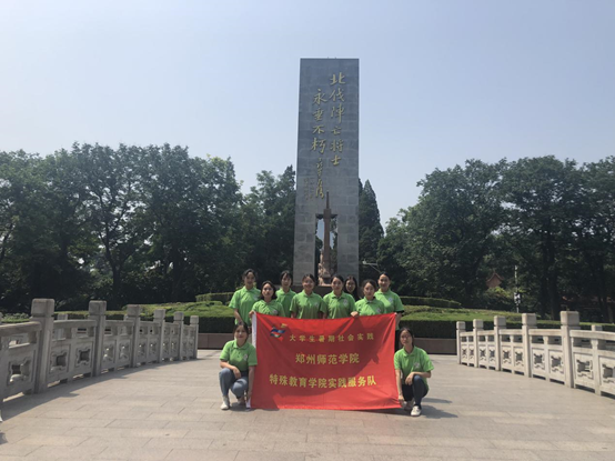 为了缅怀革命先烈,进行爱国主义教育,传承民族传统,7月13日下午,特殊教育学院“爱如阳光”社会实践团的队员们踏上了前往碧沙岗公园爱国教育基地以及郑州市博物馆“光辉的历程”展览的征程。