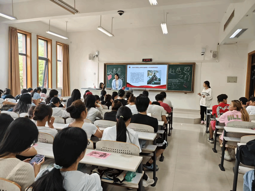 在本次团课中,主持人宣讲团通过演讲PPT,以进行会议的形式,从青春与感恩的时代解码;团旗下的感恩教育:历史与传承;青春感恩的“三重境界”;青春向党,感恩前行四个方面对本次团课活动进行了详细讲解。其一,青春与感恩的时代解码:在团旗下书写新时代青年的感恩答卷。《新时代爱国主义教育实施纲要》中写到,党的十八大以来,以习近平同志为核心的党中央高度重视爱国主义教育,固本培元、凝心铸魂,作出一系列重要部署,推动爱国主义教育取得显著成效。青春感恩的“三个维度:对社会的感恩,对生命的感恩,对党的感恩。其二,团旗下 的感恩教育:历史与传承。革命年代:共青团员用生命践行对党的感恩。刘胡兰(1932-1947):生的伟大,死的光荣赵一曼(1905-1936):白山黑水间的红梅;建设时期:青年突击队“感恩祖国、报效祖国”的奋斗故事,以劳动模范孟泰为精神导师,青年突击队员在废料堆中“淘宝”,修复高炉设备,自制配件2000余件,使鞍钢迅速恢复生产,支援全国建设;30万建设者中,青年占比超60%。他们以钢钎铁锤开山凿洞,在悬崖峭壁间架起1083座桥梁、打通427条隧道,平均每公里牺牲2人,用生命铺就“20世纪人类征服自然的三大奇迹”之一。抗疫一线“00后”团员:守护他人即感恩社会,角色蜕变:从“非典时被保护”到“新冠时去保护;抗疫一线的青春担当:守护他人的多维实践。其三,青春感恩的“三重境界。第一重:认知感恩,汶川地震幸存者李娜(化名)成为专业救援队员,抗美援朝老兵后代组建“老兵故事团”,第二重:情感共鸣,张校长的“单向付出”:以生命为烛,照亮山坳女孩的未来,学子的“反向守护”:以成长为盾,守护张校长的初心,第三重:行动自觉,清华大学“乡村振兴工作站”实践团:以青春之力赋能乡村发展。其四,青春向党,感恩前行。以感恩之心投身民族复兴,书写青春华章,冬奥会上,奥运健儿拼字当头、奋勇争先,为我国在冬奥会上的奖牌数创下历史新高。