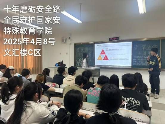 2025年4月8日,特殊教育学院团总支组织开展了以“十年磨砺安全路,全民守护国家安”为主题的宣传活动。本次活动以线下宣传为主,充分利用线下会议等方式来宣传“十年磨砺安全路,全民守护国家安”为主题的国家安全意识。