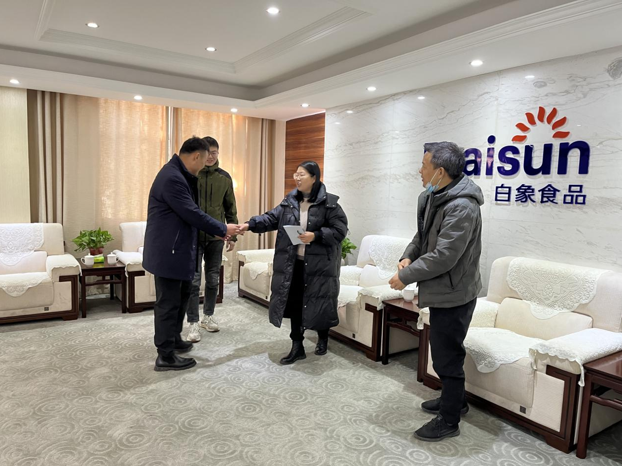 为进一步深化校企合作,拓展学生就业渠道,促进2025届毕业生高质量充分就业,2024年12月31日,特殊教育学院党总支副书记吴筱玫、副院长翟孟、团总支副书记马亚萌、辅导员钱学刚与陈晨一行,前往白象食品集团开展访企拓岗活动。