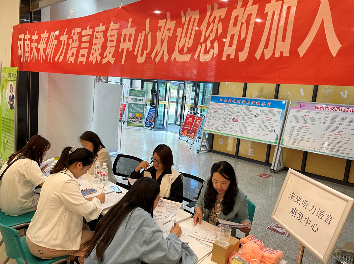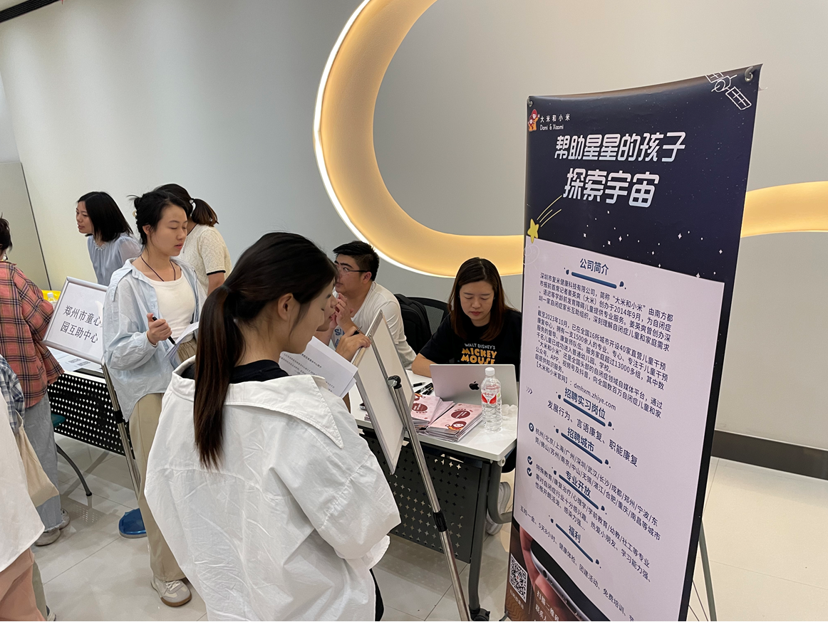 双选会中,奇色花福利幼儿园、郑州市童心家园互助中心、未来听力语言康复中心、大米和小米、ALSOLIFE、郑州市康达能力训练中心、郑州康园听力语言康复中心、郑州昊雨智能发展服务中心、新密市燕昊儿童康复中心、河南金声听力技术有限公司、郑州睿梦儿童康复中心、洛阳市洛龙区培智学校等单位的负责人为学生具体介绍其单位的发展概况、单位文化、工作岗位及薪资待遇等方面内容。