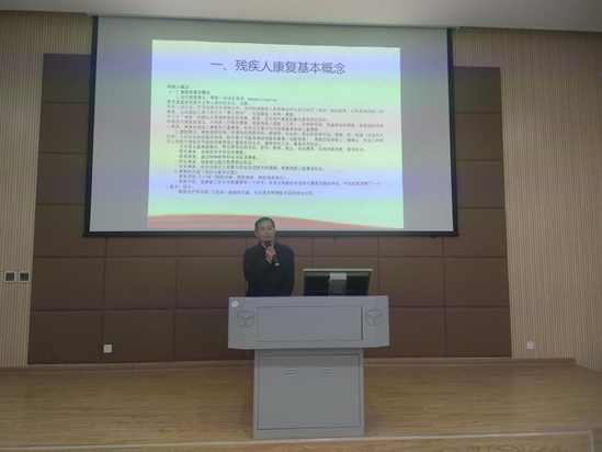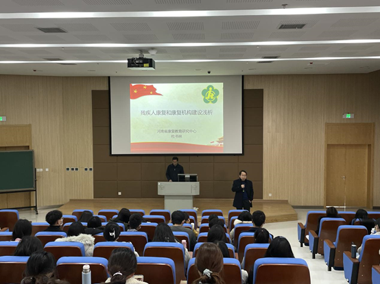 2020年11月29日早上8:20,河南省康复教育研究中心的杜书林主任在尚志楼三楼报告厅开展了以“残疾人康复和康复机构建设浅析”为主题的讲座,B19康复班、特教1班和特教2班全员参与。