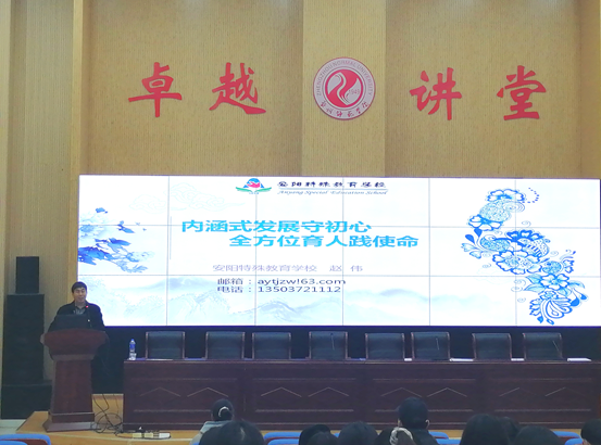 2020年11月29日下午2点,安阳市特殊教育学校赵伟教授在郑州师范学院西校区卓越讲堂开展“内涵式发展守初心,全方位育人践使命”的专题讲座。