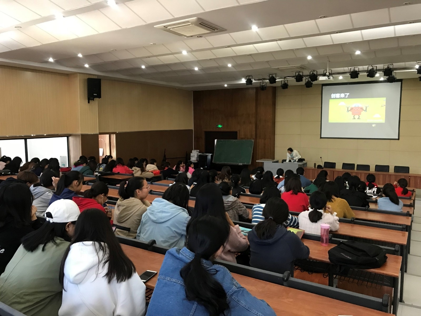讲座伊始,曹老师用视频的方式向大家详细介绍了创客的含义以及何为创客空间,并解释了创客活动的概念,其中包括创客嘉年华,创客马拉松等,让大家体验到了创客人的快乐。其次,曹老师提出,创客教育,是在创客空间中开展的培养青少年创客的一种教育类型,是以造物的形式培养学生综合实践能力的一种工程教育,是时代发展的需求。基于国家课程实施创客教育的可行性和必要性,教育部下发了一系列文件。如果我们还用昨天的方式教育今天的孩子,那就等于抹杀孩子的明天。最后,通过观看视频,同学们了解到创客教育在中国的发展现状,曹老师还向大家展示了部分学生作品,并指出,有文化,有内涵,有现代技术的作品,才能被称为创客作品。