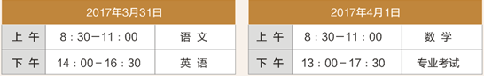 报名时间为:2017年3月15日—27日。考生可到我校行政楼招生办114房间现场报名,也可以通过邮局将报名费的汇款凭证(或汇款单复印件)和报名材料邮寄到我校招生办。请教师、家长在汇款单上写明报考考生的姓名(同时报名多人的,请另附一页纸列出报考考生姓名及专业)。
